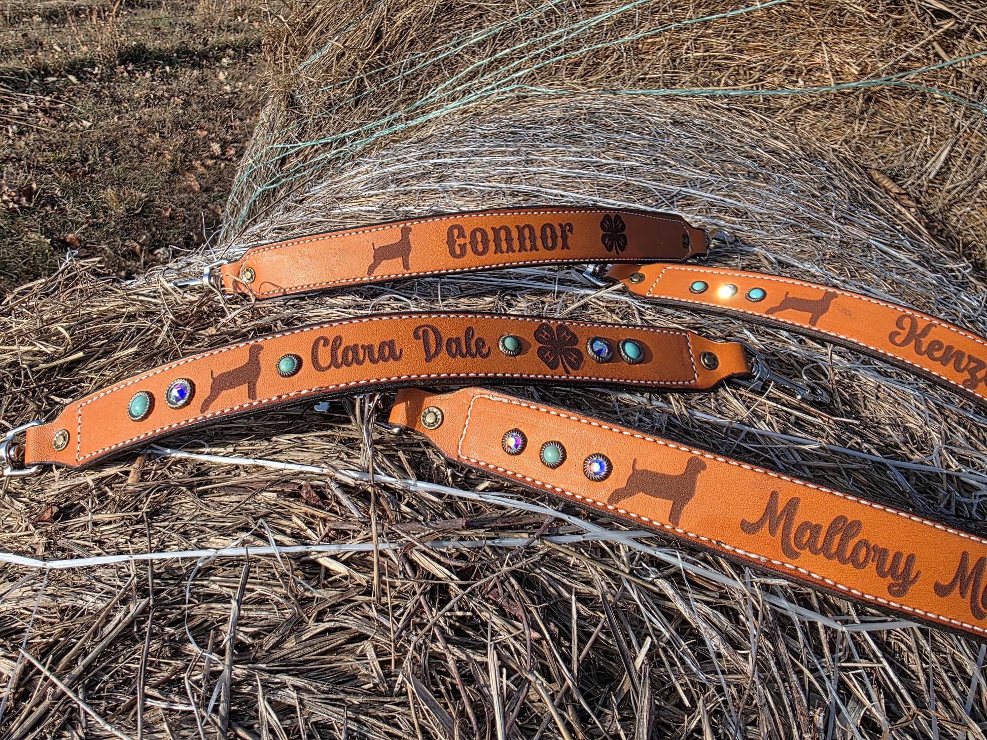 Designed for the show ring and built to last, our custom laser engraved show goat collars offer a clean, professional look with the durability serious exhibitors expect. Each collar is handcrafted and engraved in-house, allowing for crisp, permanent personalization that won’t fade, peel, or wear away over time.