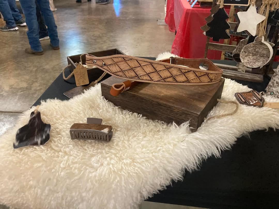 Hand tooled weave leather gun sling, adjustable from 37.5"-44.5" and lined with suede to help keep your sling in place when head to the stand or blind.